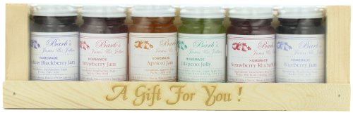6-3 ounce jars nestled in an Amish made wooden crate