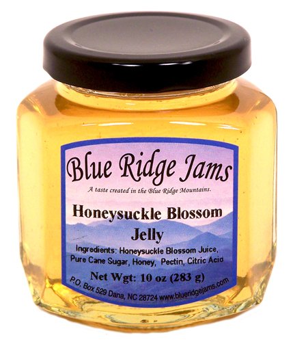 This item includes three (3) - 10 oz jars of Honeysuckle Blossom Jelly. Honeysuckle Blossom Jelly is made from the finest juice, and contains no pieces of fruit. Jellies have a consistent texture and a see through appearance.
