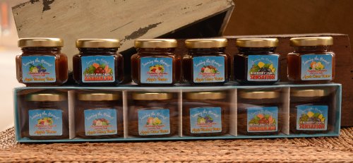 For those who like variety. This little blue beauty is filled with a mini jar each of organic Apple Butter, Apple Cherry Butter, Apple Citrus Butter, Apple Blueberry Butter, Bing Cherry Marmalade and Blueberry Lemon Sensation. A perfect stocking stuffer or hostess gift. Complete with bow.