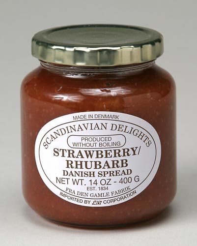 Starting With Choice, Ripe Fruit And Fresh Berries Picked Wild And Gently Prepared Without Boiling, This Gentle Treatment Allows The Fruit To Retain More Of Their Natural Flavor, Color, And Sweetness. This Popular Spread Will Remind You Of Grandma'S House And The Smell Of Her Old-Fashioned Strawberry / Rhubarb Pie. Elki'S Strawberries Come From Denmark. The Strawberries Are Selected Late In The Season When They Have Received The Most Sun, Are Not Very Big And Have More Flavor Due To The Slow Ripening Process. For Elki'S Rhubarb, We Only Use The Red Part Of The Rhubarb To Create The Ultimate Spread. You Can'T Beat This Amazing Spread For It'S Fresh Taste Complete With Large Pieces Of Strawberries And Rhubarb Pieces. Makes A Wonderful Topping For Muffins, Bagels, Bread Or Delicious Just Eaten Off Of A Spoon Right Out Of The Jar! For Over One Hundred And Seventy Years Scandinavian Delights Spread From Elki Have Been Made In Exactly The Same Way, From The Same Time Honored Traditional Recipes. Is It Any Wonder They Have A Truly Delicious Homemade Taste? Starting With Choice, Ripe Fruit And Fresh Berries, Picked Wild And By Hand Whenever Possible, These Spreads Are Prepared Slowly And Gently, Without Boiling. This Allows The Fruit And Berries To Retain More Of Their Natural Flavor, Color And Sweetness And Requires Substantially Less Sugar Be Added Than Regular Preserves. Scandinavian Delights - Strawberry Rhubarb Danish Spread (Produced w/o Boiling) - Each Jar is 14 Oz (Pack of 12)
