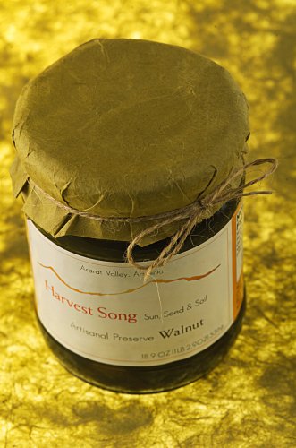 Harvest Song's fruits are grown near the Biblical mount Ararat. Armenia's vertical topography is approximately 10,000 feet above Sea level. The fruits are grown in ideal conditions of volcanic soil and surrounding Spring waters. At Harvest Song, we pride ourselves in creating hand-made preserves. We pack only during the harvest season. The fruits are grown in a chemical and pesticide-free environment. During the harvest season, we pick only the ripest fruits from the farms on a daily basis; our cannery uses minimal knives and the fruits are carefully hand inspected. We slow-cook with a little bit of pure cane sugar and citric acid (tiny amount of lemon juice for acidity). All formulas and each harvest is selected by Sylvia Tirakian. No preservatives, no Pectin. All jars are decorated with handmade rice paper from Kathmandu, Nepal.